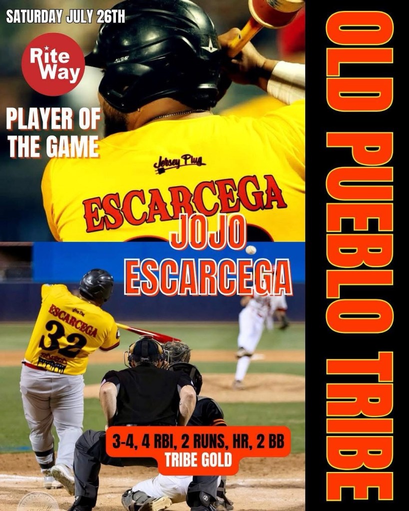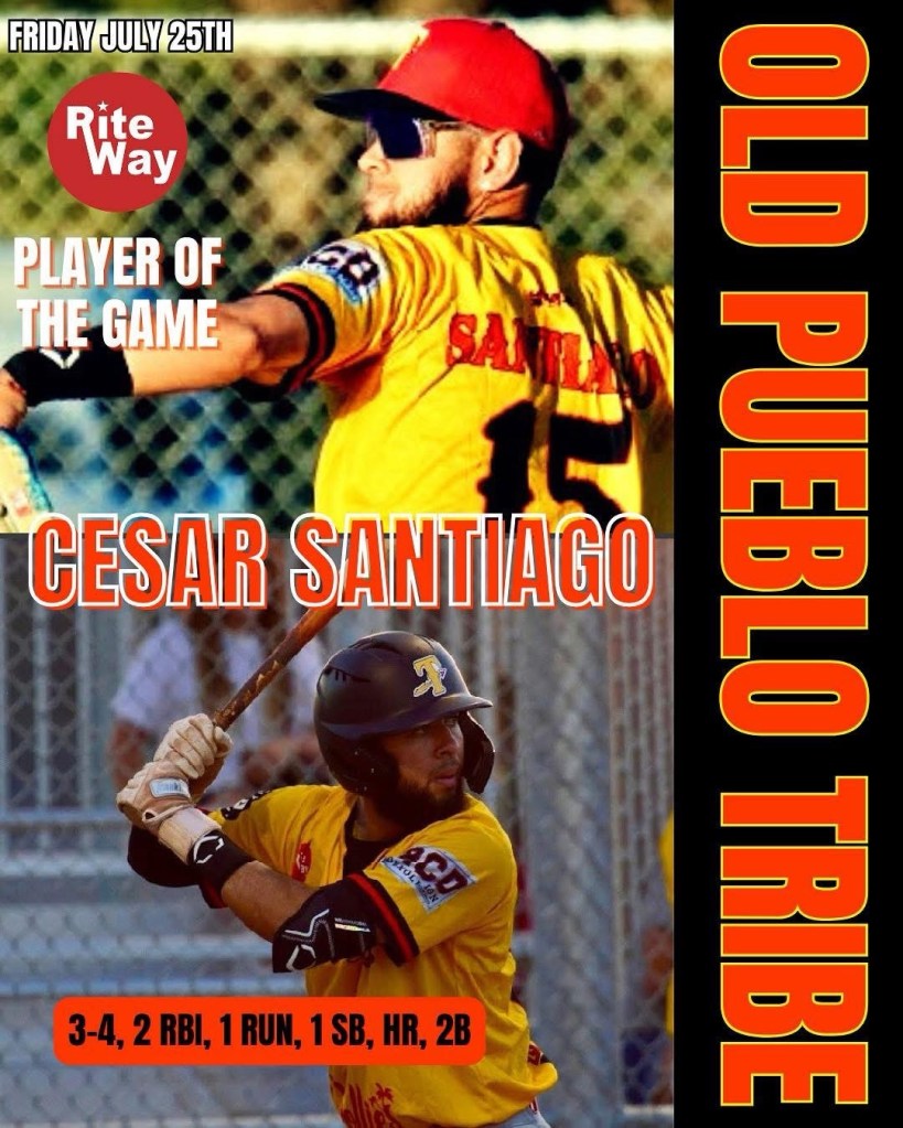 Cesar Santiago walked away with RiteWay’s Player of the Game Award handed out by the Tribe for his 3-4 performance which drove in 2 RBI’s.